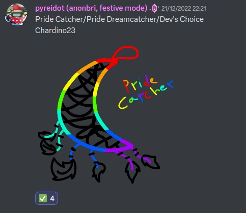 | Unknown (Original concept named Pride Catcher) | New board. It's a dreamcatcher themed around the rainbow Pride flag. The original artist based this off an actual dream catcher they have in their room. Designed by Chardino23. | Discord Server |