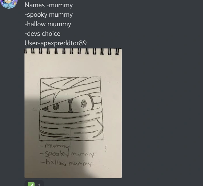 | Unknown (original concept named 'Mummy') | New Pet. It resembles a pet version of a mummy, with bulging eyeballs. Designed by apexpredditor89. | Discord Server |
