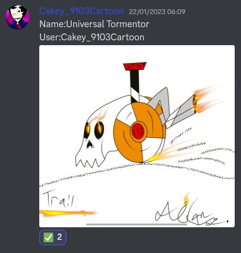 | Unknown | New board. It's a skull with orange-white wheels, a bicycle seat, and an exhaust. Designed by Cakey_9103Cartoon. | Discord Server |