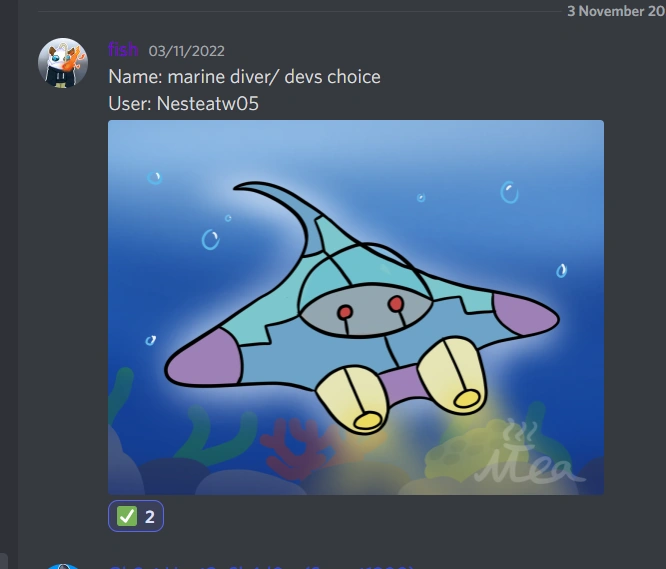 | Unknown | New Pet. It resembles a pastel submarine stylized to resemble a manta ray. Designed by Nt3a05. | Discord Server | |
