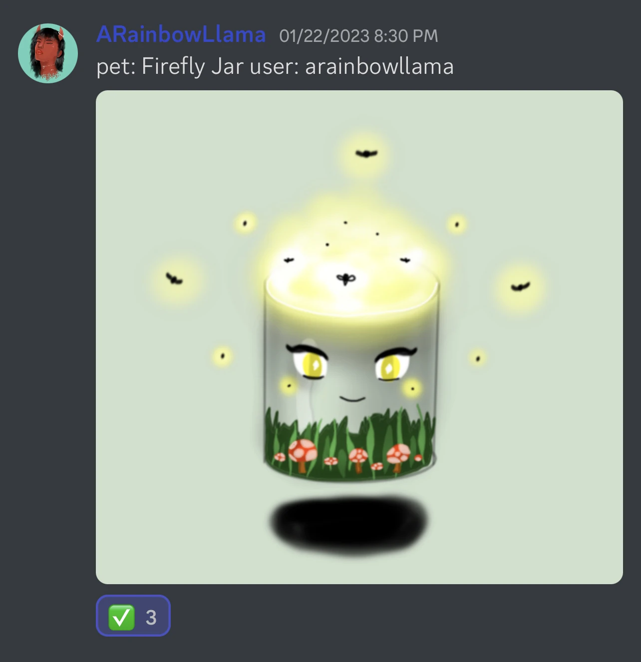 New pet. It's a jar with grass inside, with fireflies circling around it's top. Designed by arainbowllama. | Discord Server |